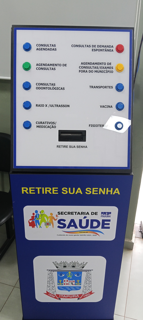 O sistema de senhas em itapura foi projetado para ser simples e acessível. Ao chegar à UBS II, o usuário seleciona no equipamento eletrônico o atendimento desejado, como consultas agendadas, odontologia, vacinação, medicação, exames ou transporte para tratamento de saúde.